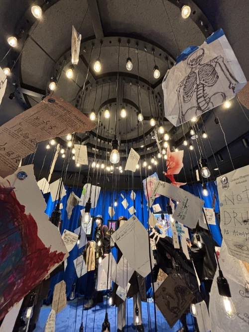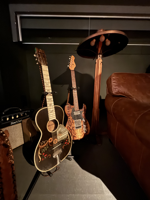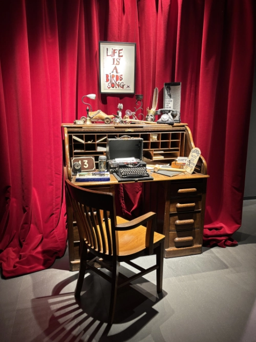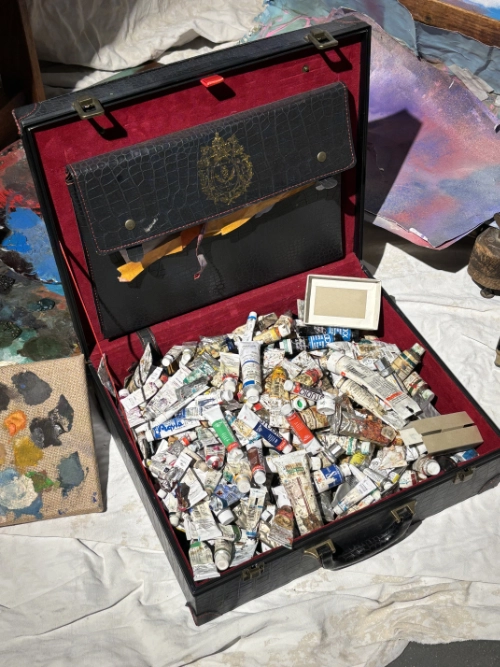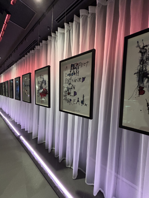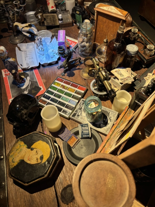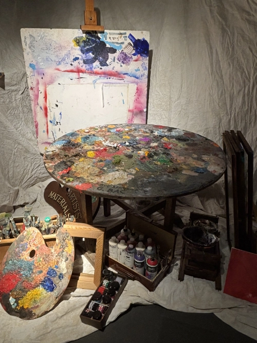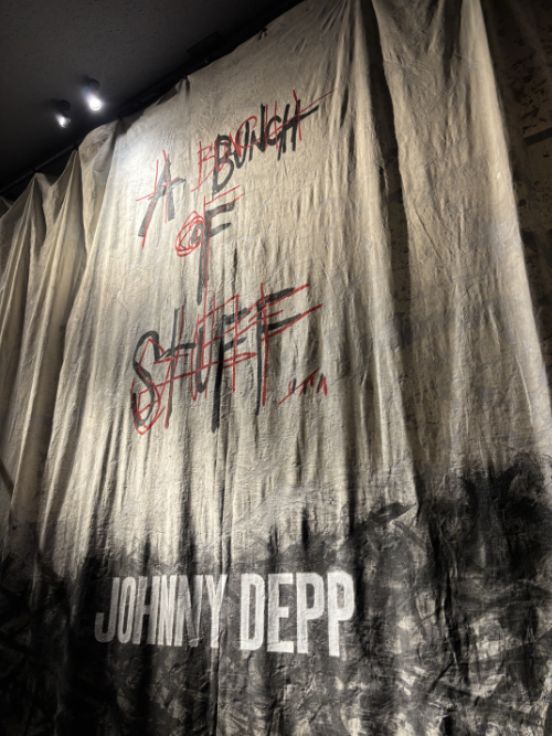 Johnny Depp, an artist with a sensitive, pure, beautiful soul, seems to float through every corner of this exhibition. His paintings, couches, chairs, bookshelves, drawing tables, canvases, thousands of paints, brushes, guitars, . . . . his knickknacks . . . . everything was there. It felt like walking through his life and journey, deep inside his heart and mind.